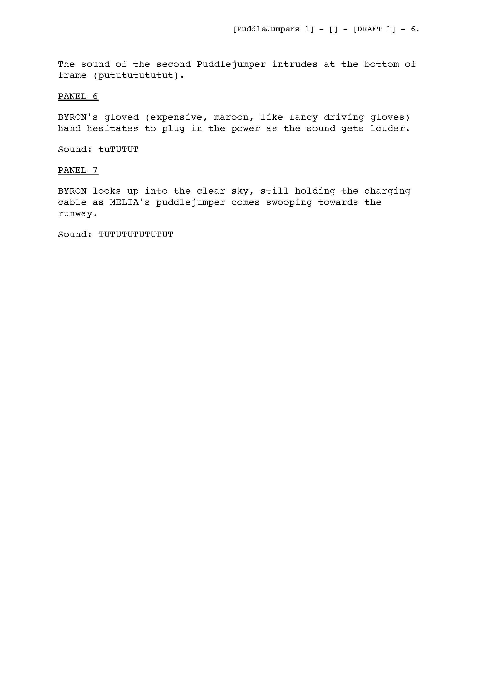 I thought today I'd give you a peek behind the curtain at the comic script itself so you can see what information Vicky is working with, and how that information then finds its way onto the page. So, below is the first page of 'Clear Skies'.